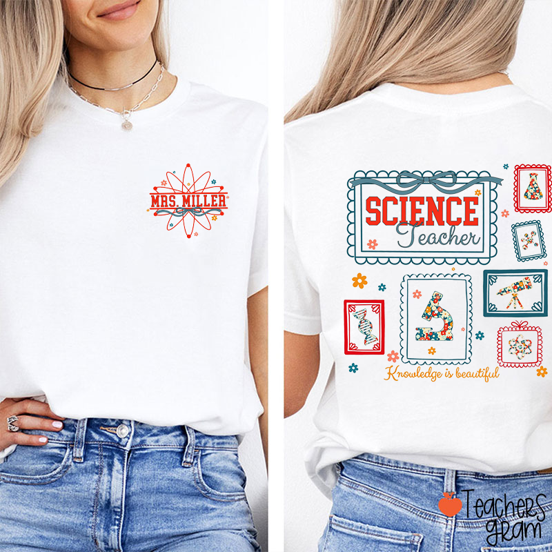 Personalized Knowledge Is Beautiful Science Teacher Two Sided T-Shirt