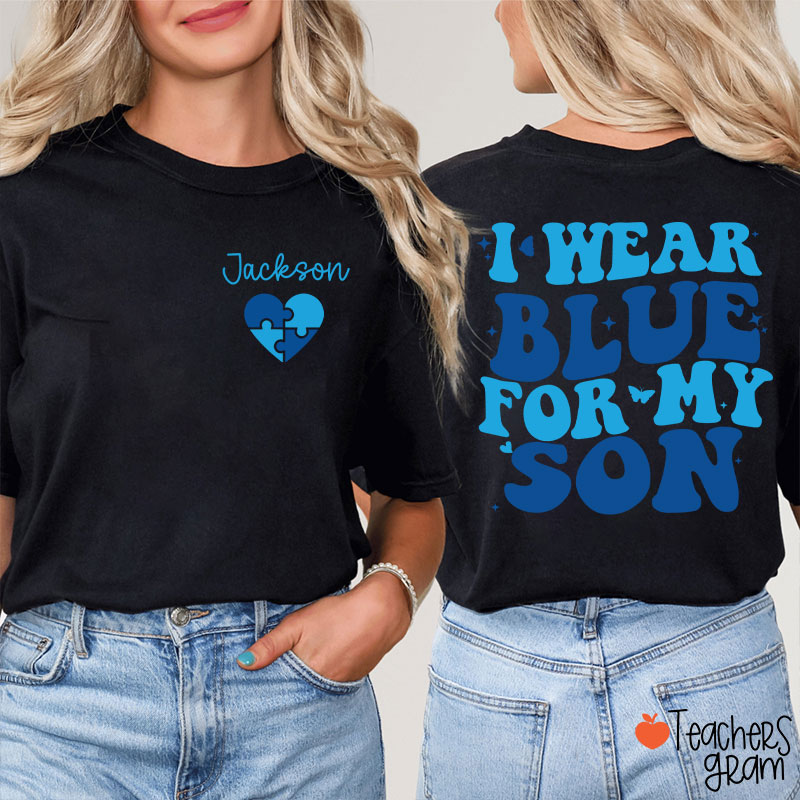 Personalized I Wear Blue For Teacher Two Sided T-Shirt