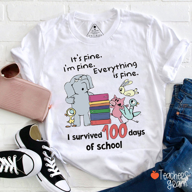 Everything Is Fine I Survived 100 Days Of School Teacher T-Shirt