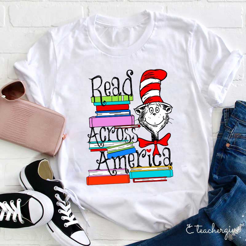 Read Across America Red Hat Cat Teacher T-Shirt