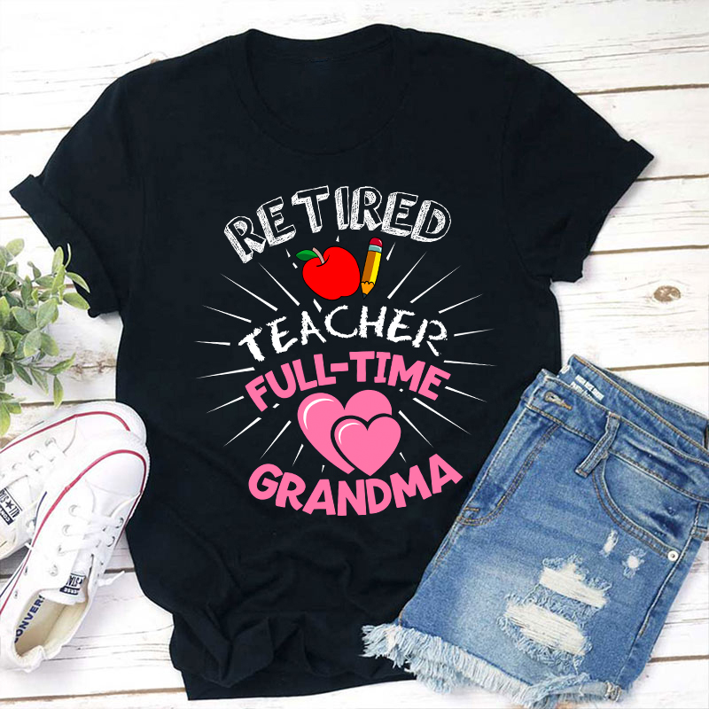 Retired Teacher Full Time Grandma Teacher T-Shirt
