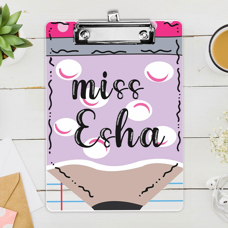 Personalized Pencil Illustration With Name Teacher Clipboard