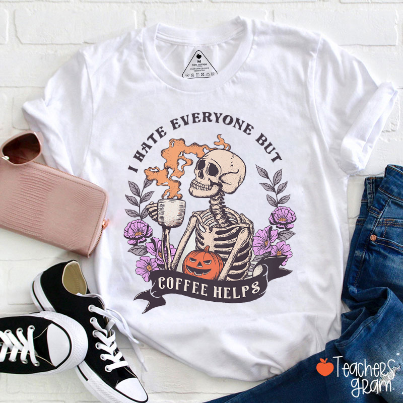 I Hate Everyone But Coffee Helps Teacher T-Shirt