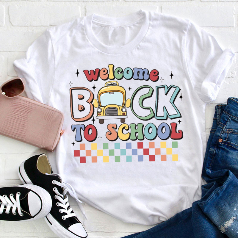 Colorful Checkerboard Welcome Back To School Teacher T-Shirt