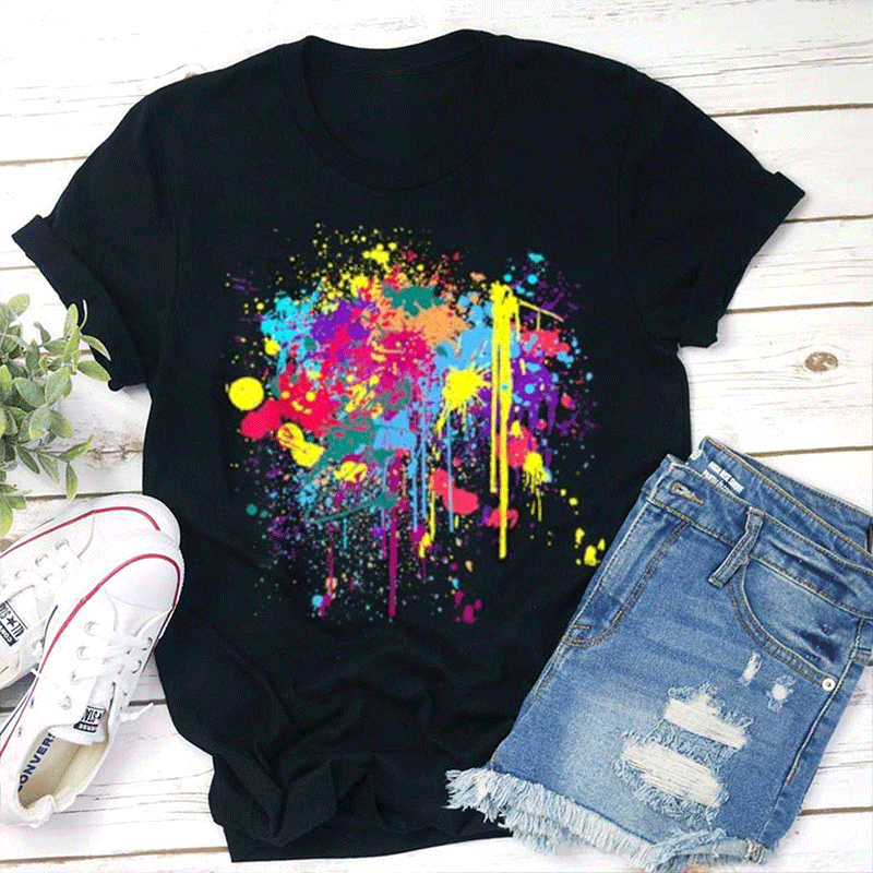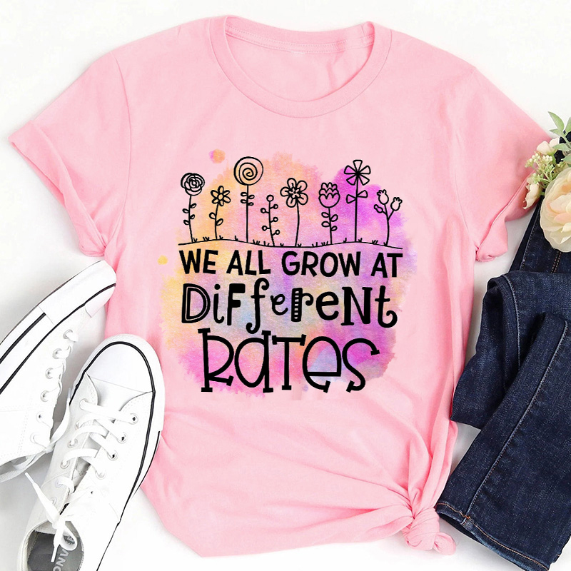 Pink Splash Ink We All Grow At Different Rates Teacher T-Shirt
