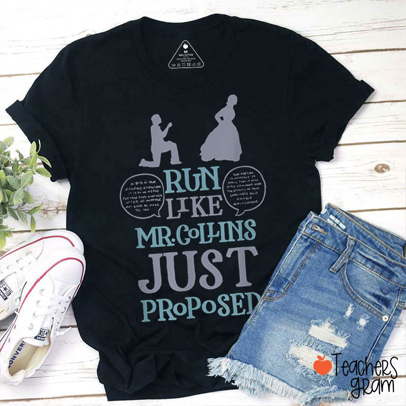 Run Like Mr. Collins Just Proposed Funny Books And Running Teacher T-Shirt