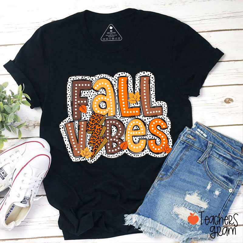 Fall Vibes Leopard Lightning Teacher T-Shirt