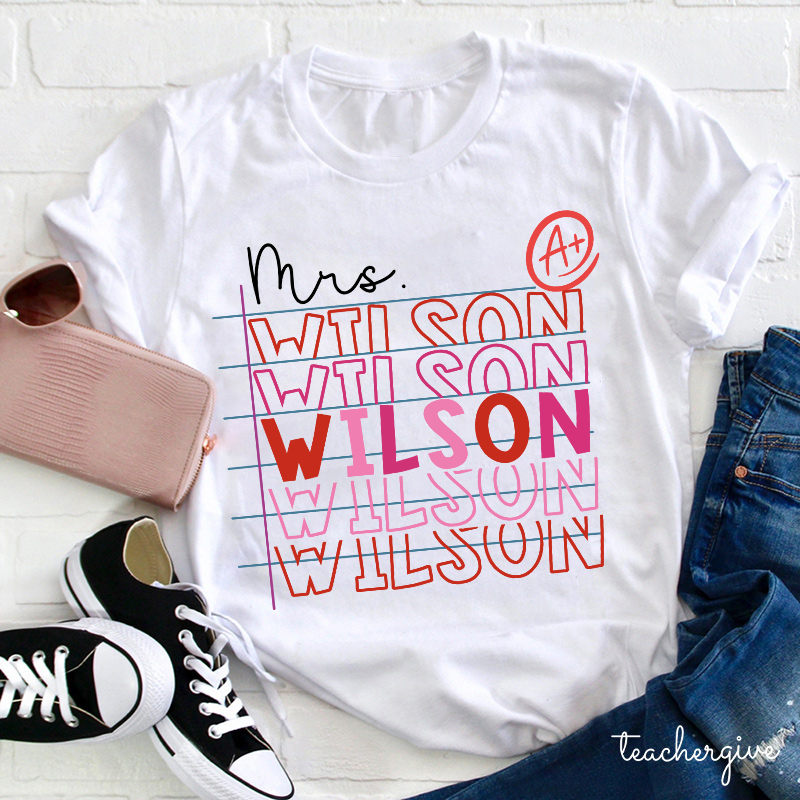Personalized Christmas Classic Pattern Teacher Name Teacher T-Shirt