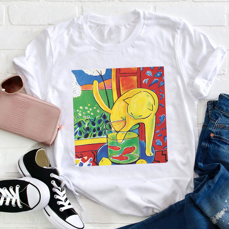 Cat With Red Fish Teacher T-Shirt