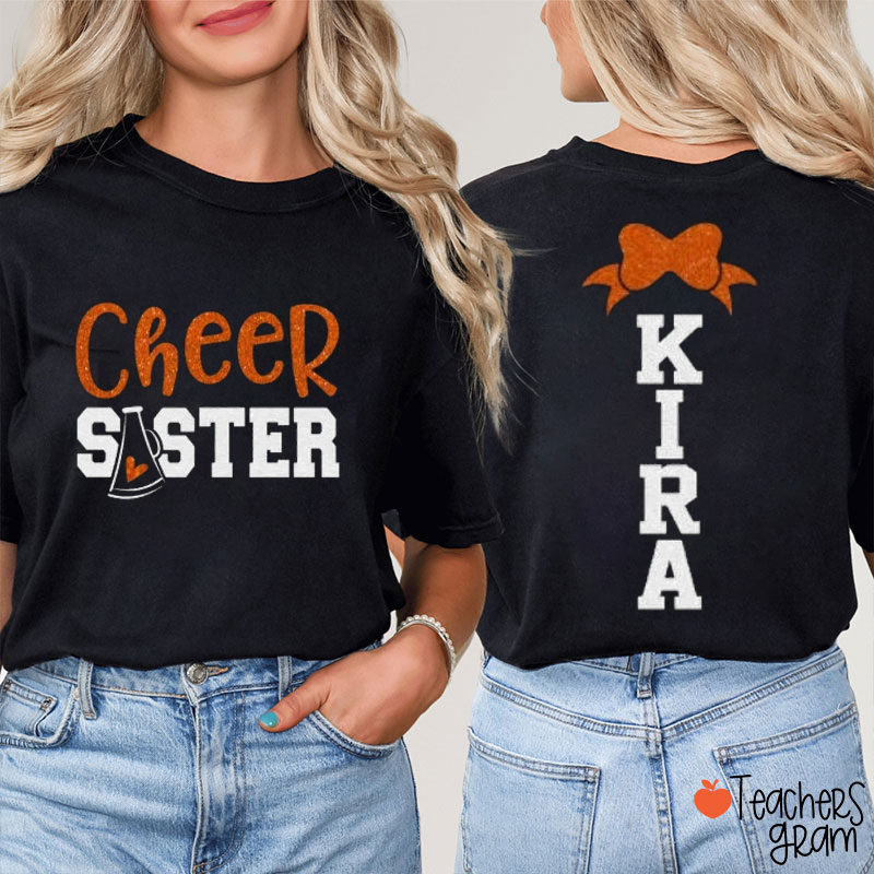 Personalized Mascot Glitter Cheer Teacher Two Sided T-Shirt