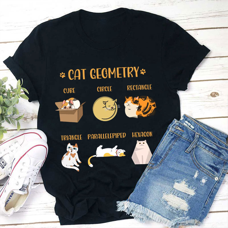 Cat Geometry Cute Cat Icon Teacher T-Shirt