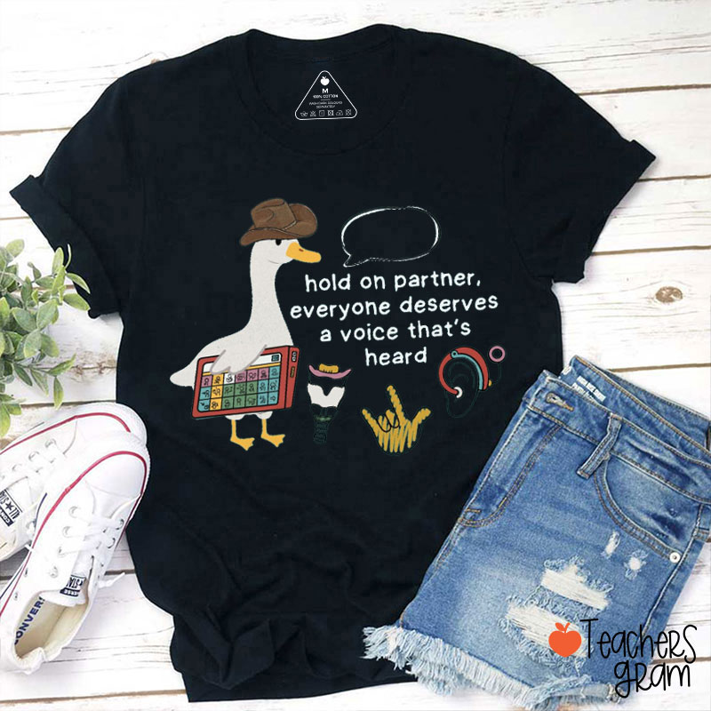 Hold On Partner Everyone Deserves A Voice That's Heard Teacher T-Shirt