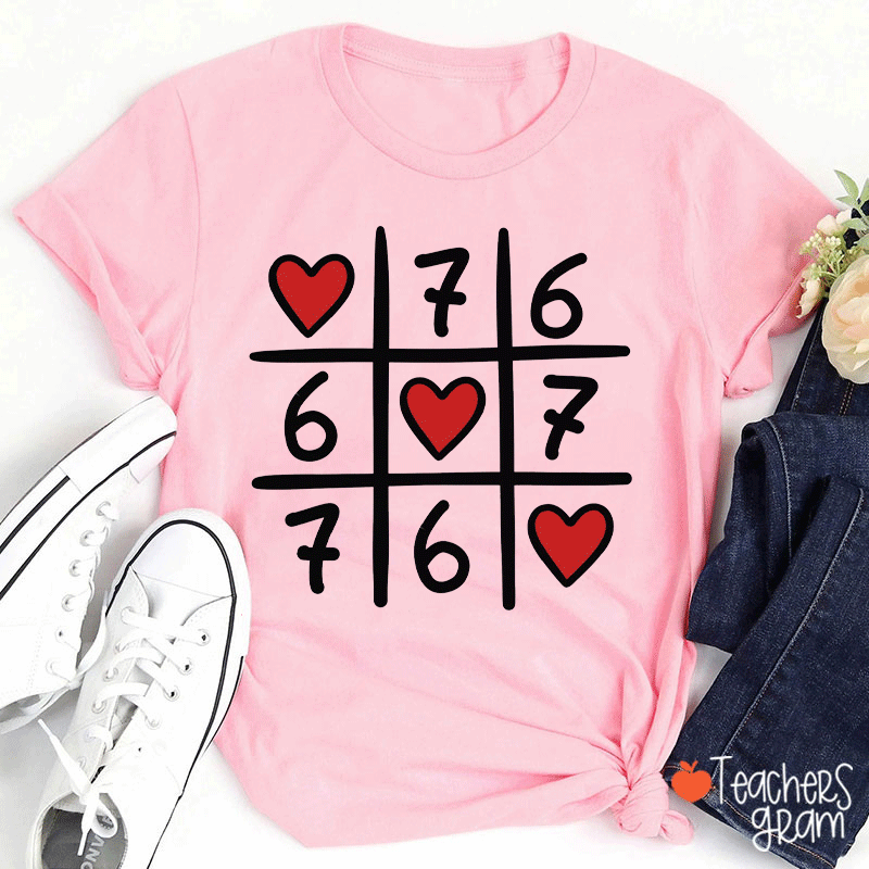 Red Heart Patterned Tic-tac-toe teacher T-shirt
