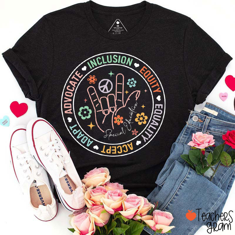 Sign Language Advocate Inclusion Valentine Teacher T-Shirt