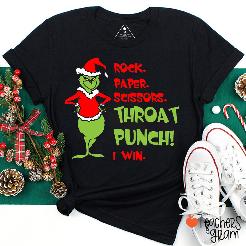 Rock Paper Scissors Throat Punch I Win Teacher T-Shirt