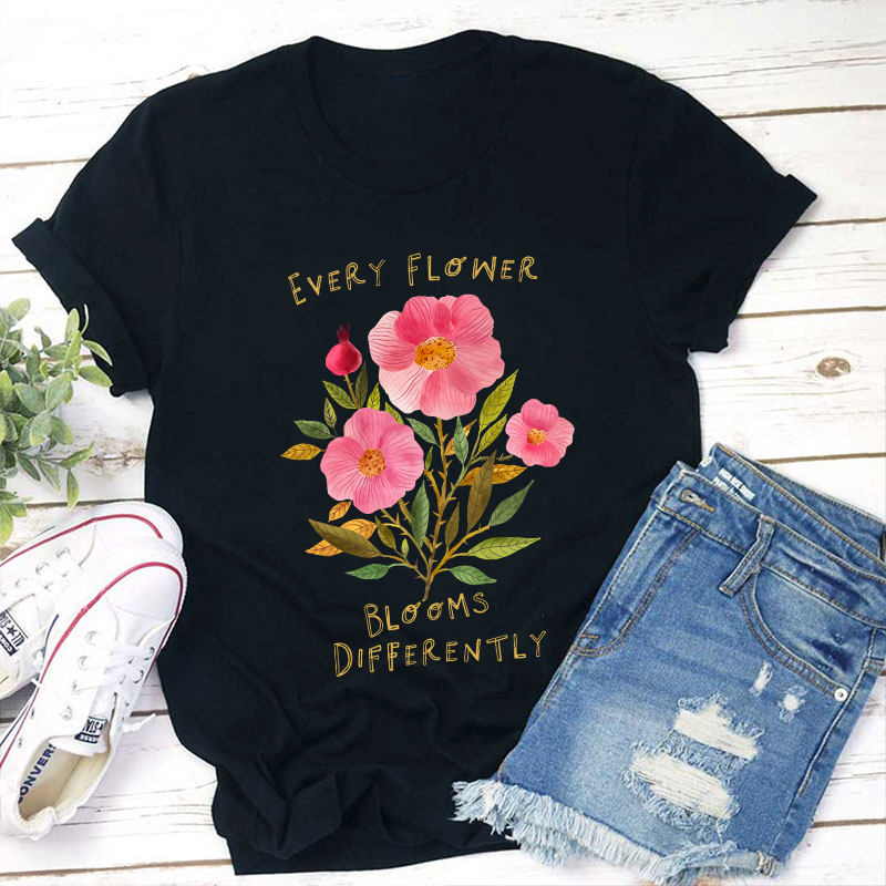 Every Flower Blooms Differently Neurodiversity Teacher T-Shirt