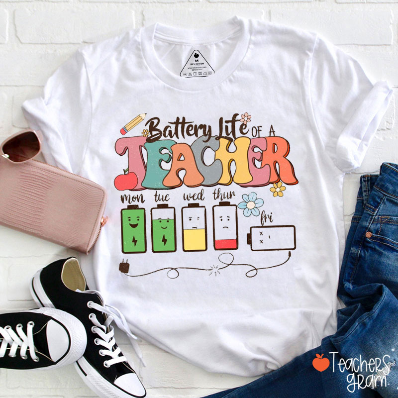 Battery Life Of A Teacher Funny Teacher T-Shirt