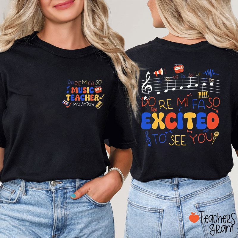 Personalized Name Grade Staff Notes Radio Speaker Teacher Two Sided T-Shirt