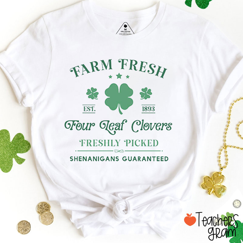Farm Fresh Four Leaf Clovers Shenanigans Guaranteed Teacher T-Shirt