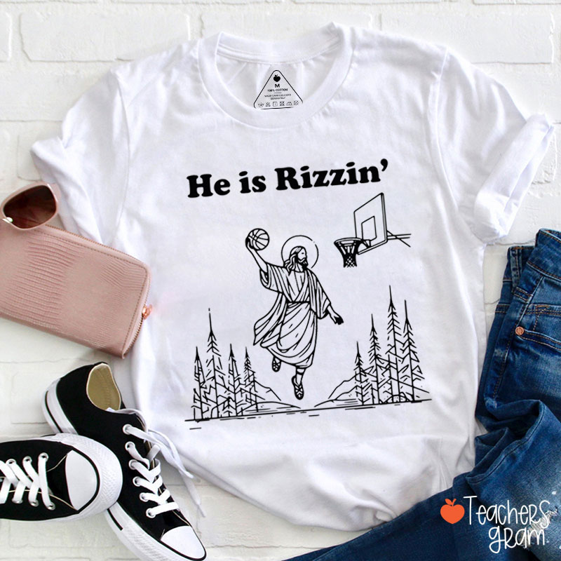 He Is Rizzin' Humorous easter Teacher T-Shirt
