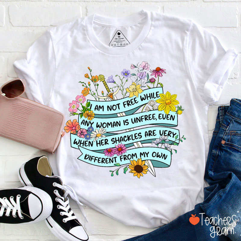 Floral I Am Not Free While Any Woman Is Unfree Feminist Womens Righ Teacher T-Shirt