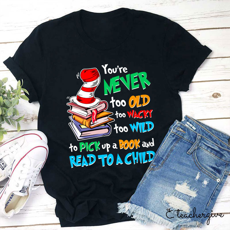 You're Never Too Old Too Wacky Too Wild To Pick Up A Book And Read To A Child Teacher T-Shirt