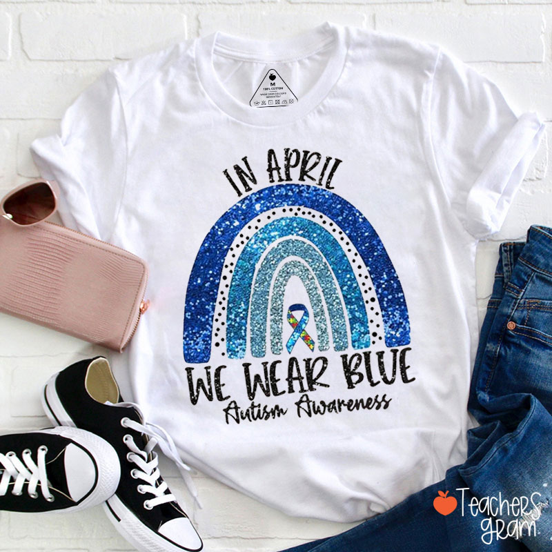 Blue Rainbow In April We Wear Blue For Autism Awareness Teacher T-Shirt