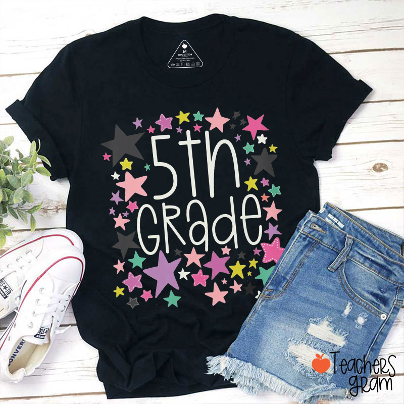 Personalized Grade Star Pink Teacher T-Shirt