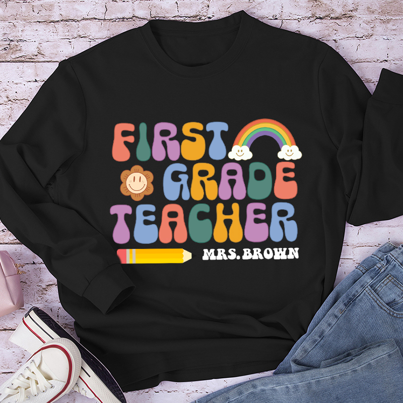 Personalized First Grade Teacher Teacher Name Letter Teacher Long Sleeve T-Shirt