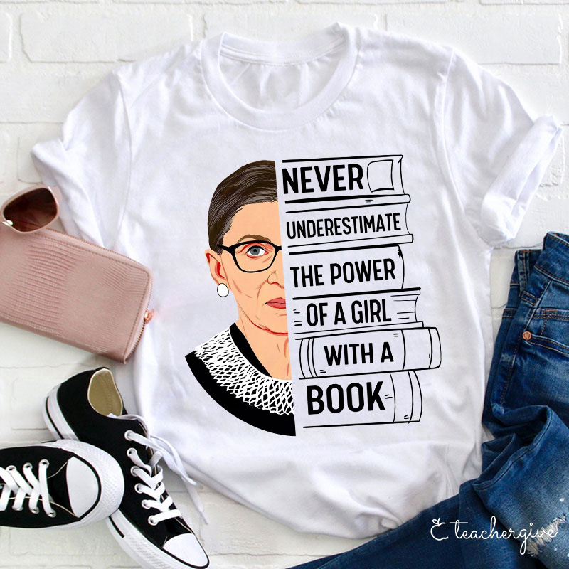 Never Underestimate The Power Of A Woman With A Book Teacher T-Shirt