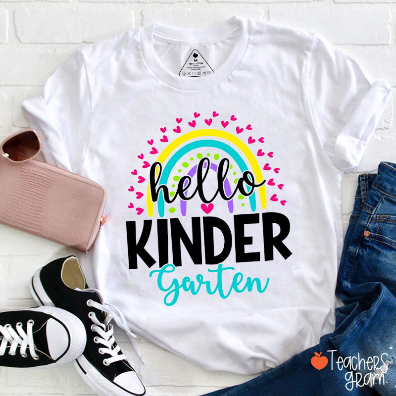 Personalized Grade Love Heart Rainbow Teacher T-Shirt