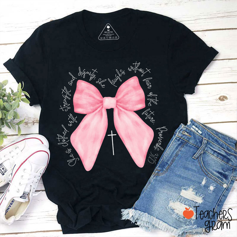 She Is Clothed With Strength And Dignity Teacher T-Shirt