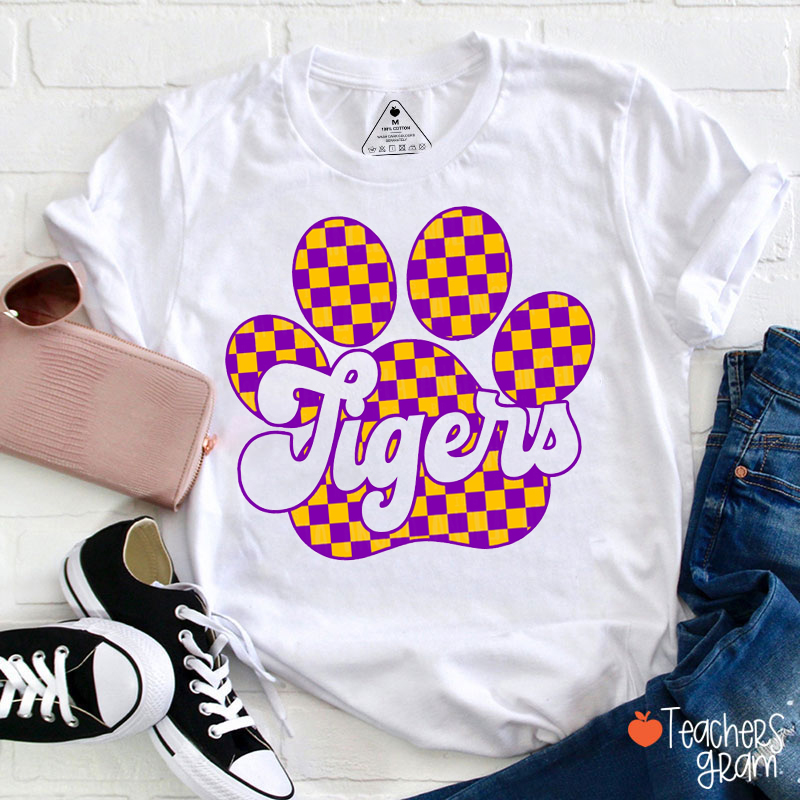 Personalized Mascot Grid Paw School Spirit Teacher T-Shirt