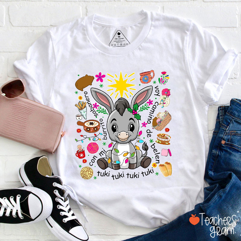 Cute Donkey And Mexican Food Spanish Teacher T-Shirt