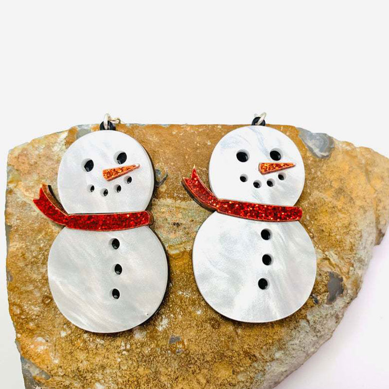 Slightly Snowman With Red Scarf Teacher Acrylic Earrings