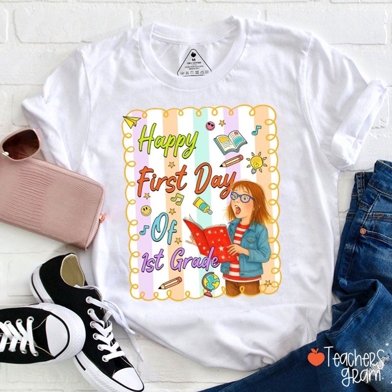 Personalized Happy First Day Of School Children's Book Girl Teacher T-Shirt