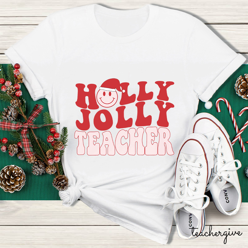 Holly Jolly Pink Teacher T-Shirt