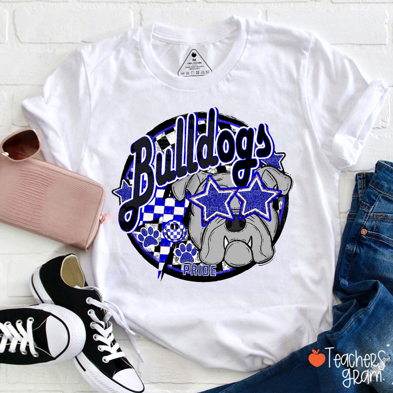 Personalized Mascot Star Eyes Checkered Teacher T-Shirt