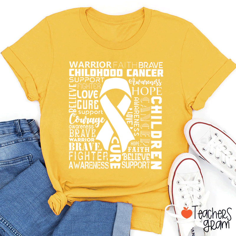 Childhood Cancer Awareness Yellow Ribbon Teacher T-Shirt
