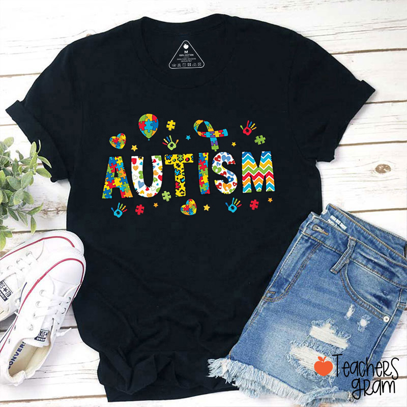 Autism Awareness Puzzle Ribbon Teacher T-Shirt
