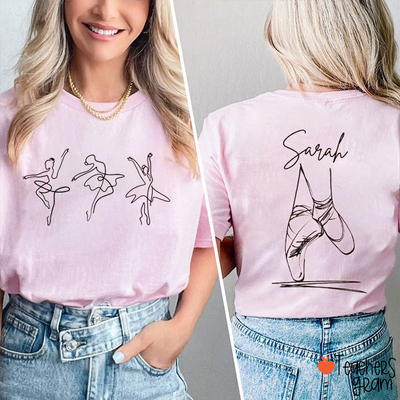 Personalized Name Ballet Dancer Teacher Two Sided T-Shirt