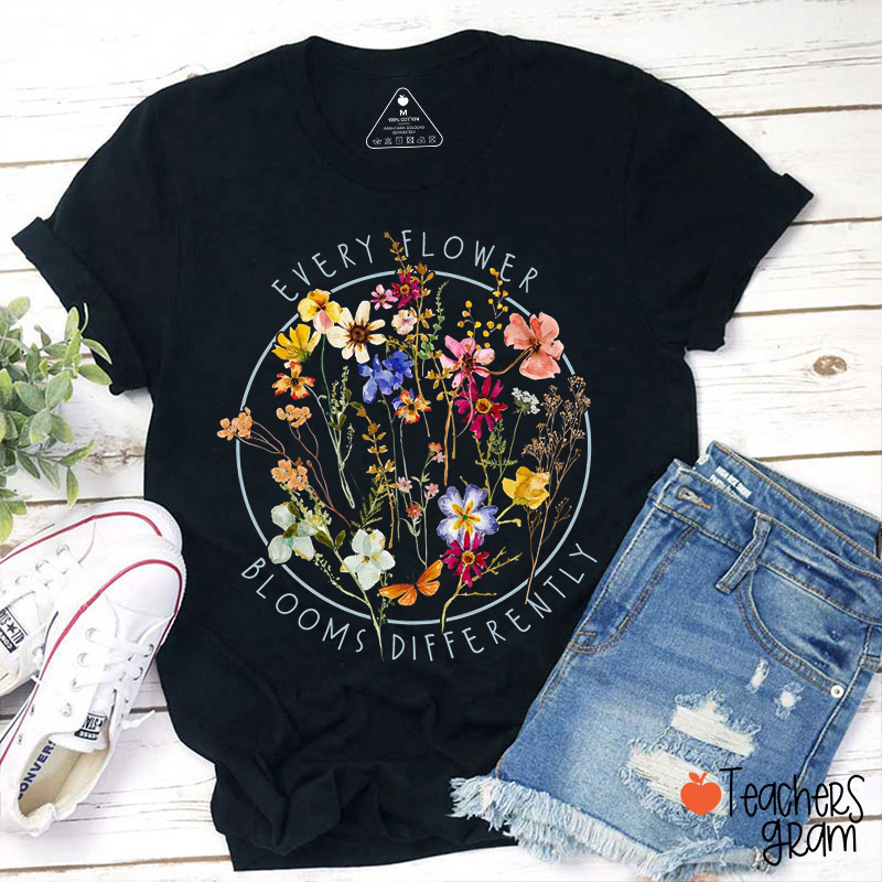 Every Flower Blooms Differently Teacher T-Shirt