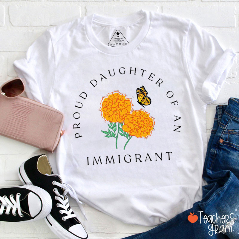 Marigold And Monarch Butterfly Proud Daughter Of An Immigrant Teacher T-Shirt