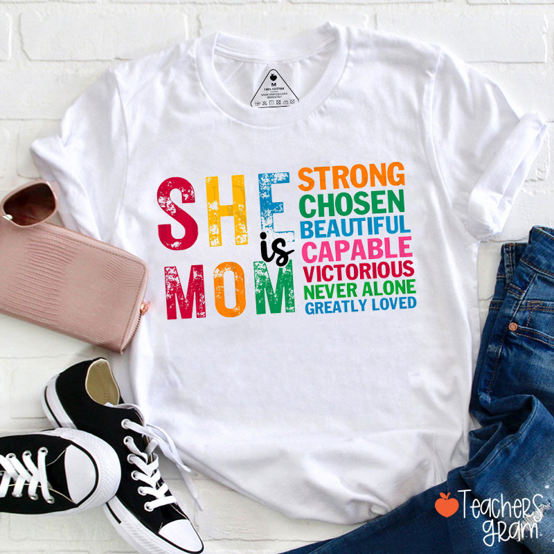 She Is Mom Strong Chosen Teacher T-Shirt