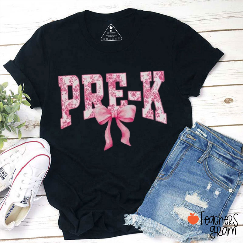 Personalized Grade Pink Flower Bow Teacher T-Shirt