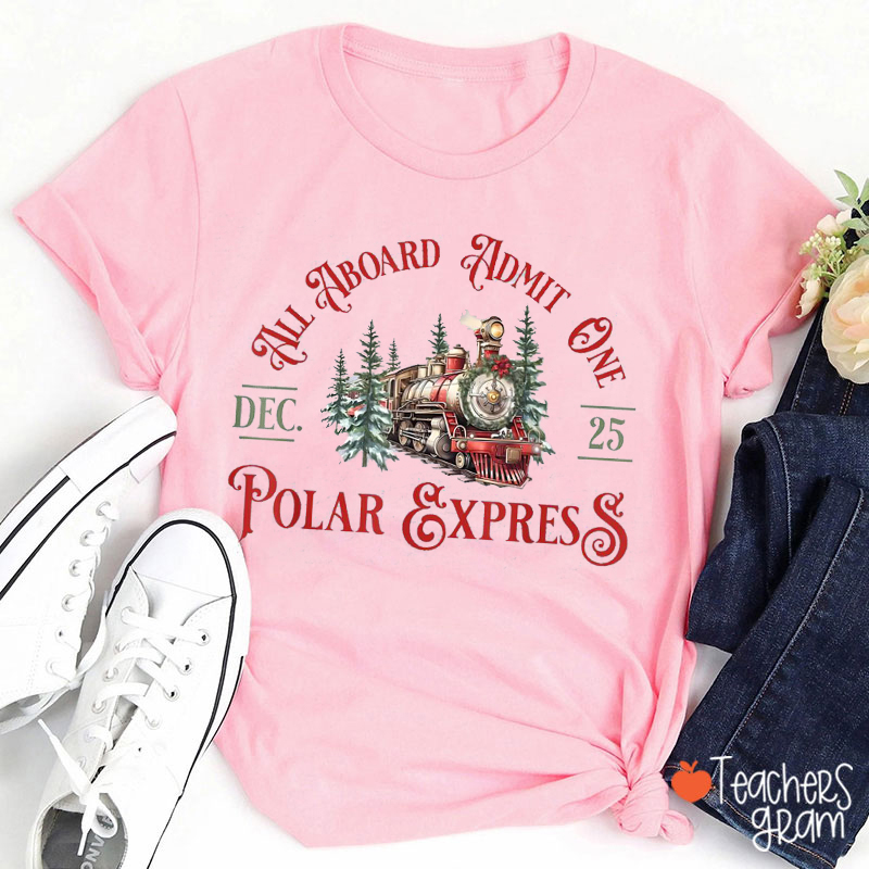All Aboard Admit One Dec. 25 Polar Express Teacher T-Shirt