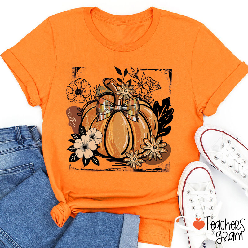 Pumpkin Face With Red Ribbon Teacher T-Shirt