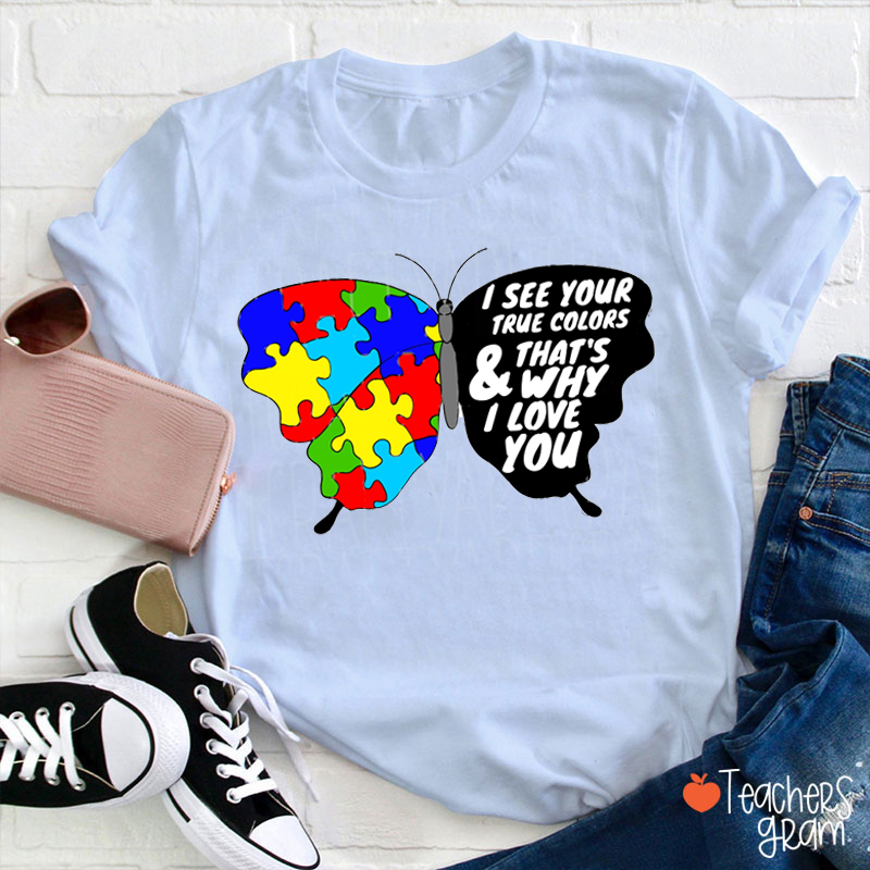 I See Your True Colors Autism Awareness Teacher T-Shirt