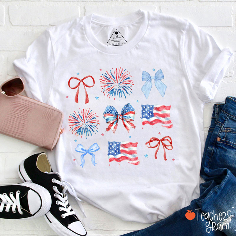 Personalized Grade Flower Bow Apple Pencil Star Teacher T-Shirt