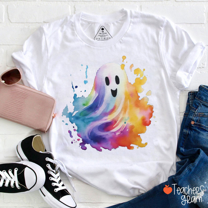 Rainbow Watercolor Ghost Teacher T-Shirt